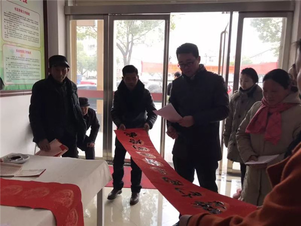 为弘扬中国传统文化,感谢新老客户对固始天骄村镇银行的关注与支持,把温暖祝福送到千家万户,1月27日,固始天骄村镇银行黄河路支行一行走进固始县番城街道办事处六里棚社区党群活动中心,开展“迎新春,送万福”活动。应黄河路支行邀请,河南省书法家协会会员、固始县书法家协会理事潘德富先生出席此次活动并亲自为居民们书写春联,送上祝福。